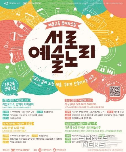 서구문화재단 관계자는 “이번 참여자 모집은 문화예술이 지역 속으로 들어가 주민의 일상과 가까워지는 중요한 계기”라며 “문화예술교육이 단순한 취미활동을 넘어 삶의 질을 높이고, 예술로 지역 공동체를 연결하는 힘이 되기를 바란다”고 전했다.