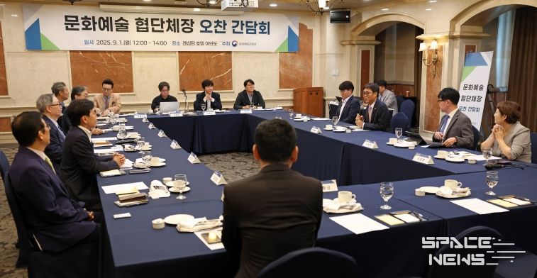 스페이스뉴스 스페이스뉴스 기자 | 문화체육관광부 최휘영 장관은 9월 1일, 켄싱턴호텔 여의도(서울 영등포구)에서 음악, 연극, 무용, 문학, 미술 등 예술 분야별 협회‧단체장들을 만나 예술계 현장 목소리를 청취하고 지속 가능한 발전 방향 및 지원 방안을 논의했다.