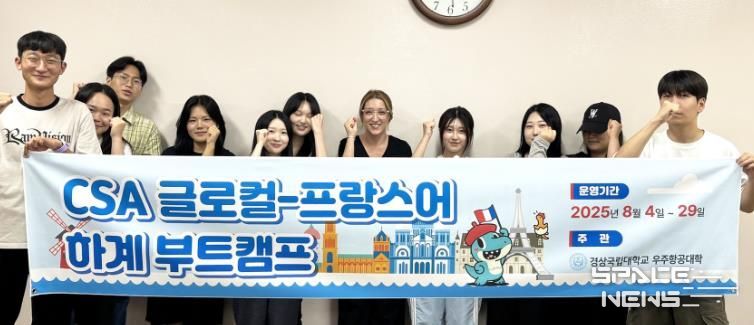 스페이스뉴스 스페이스뉴스 기자 | 경상국립대학교는 글로컬대학 30 사업의 일환으로, 해외 대학과의 복수 석·박사 과정 진학을 희망하는 학생들의 어학 능력과 인문학적 소양 함양을 위해 8월 4~29일 가좌캠퍼스에서 ‘CSA 글로컬-프랑스어 하계 부트캠프’를 운영했다.