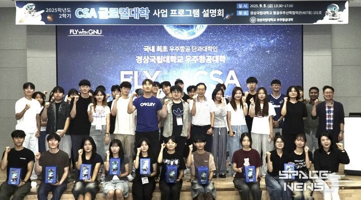 스페이스뉴스 스페이스뉴스 기자 | 경상국립대학교 우주항공대학은 9월 5일 가좌캠퍼스 항공우주산학협력관(407동) 대강당에서 재학생과 학부모 등 80여 명이 참석한 가운데 ‘2025학년도 2학기 CSA 글로컬대학사업 프로그램 설명회’를 개최했다.