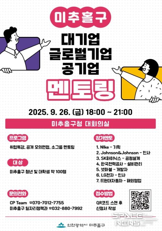 스페이스뉴스 스페이스뉴스 기자 | 인천 미추홀구는 오는 26일 구청 대회의실에서 ‘미추홀구 청년 취업 콘서트’를 개최한다.