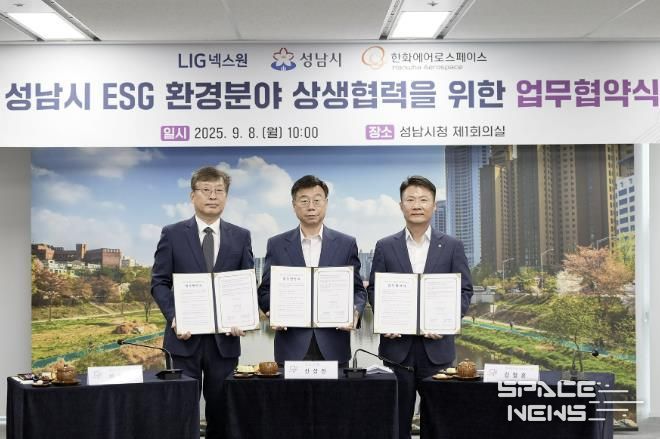 스페이스뉴스 스페이스뉴스 기자 | 성남시는 9월 8일 오전 10시 시청 4층 제1회의실에서 판교 소재 2곳 방위산업 분야 기업과 ‘이에스지(ESG) 환경 분야 상생협력을 위한 업무 협약’을 체결했다.