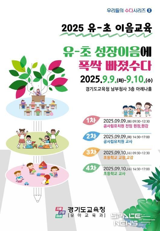스페이스뉴스 스페이스뉴스 기자 | 경기도교육청이 9일과 10일 남부청사에서 ‘유-초 성장이음’을 주제로 ‘2025 유-초 이음교육’ 맞춤형 연수를 개최한다.