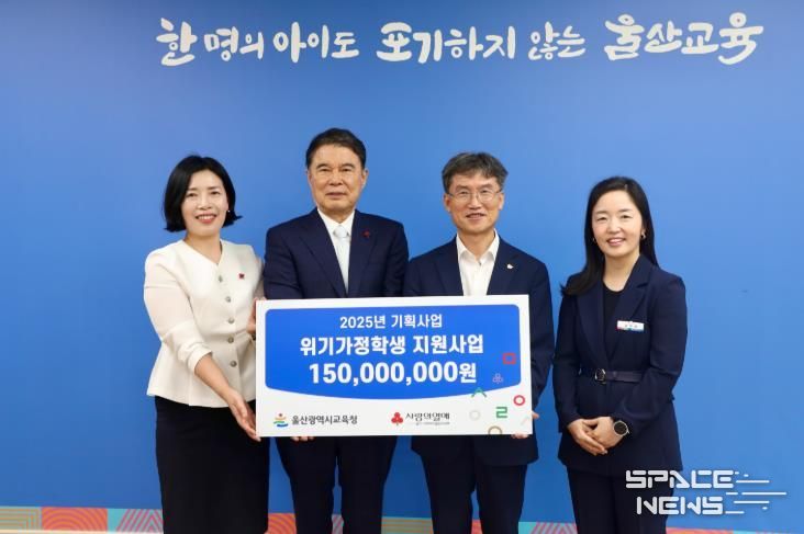 스페이스뉴스 스페이스뉴스 기자 | 울산광역시교육청은 8일 울산사회복지공동모금회에서 위기가정 학생을 위한 지원금 1억 5,000만 원을 전달받았다.