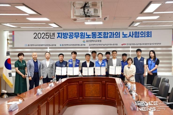 스페이스뉴스 스페이스뉴스 기자 | 울산광역시교육청은 8일 지방공무원노동조합연대 4개 단체와 ‘2025년 상반기 노사협의회 합의문’에 서명했다.