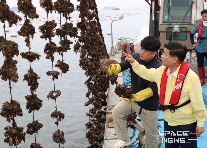 스페이스뉴스 스페이스뉴스 기자 | 고성군은 9월 8일, 산소부족 물덩어리(빈산소수괴)발생에 의한 굴·가리비 폐사 피해 양식장 현장을 방문했다.