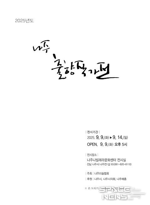 스페이스뉴스 스페이스뉴스 기자 | 전라남도 나주시가 지역 문화예술 발전과 작가들의 교류를 위해 마련한 ‘2025 출향작가초대전’이 9일부터 14일까지 6일간 나주나빌레라문화센터 전시실에서 열린다.