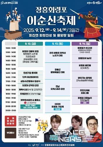 스페이스뉴스 스페이스뉴스 기자 | 장흥군은 9월 12일부터 14일까지 3일간, 장흥군 회진면 회령진성 및 회진항 물양장 일원에서 2025 장흥 회령포 이순신 축제를 개최한다고 밝혔다.