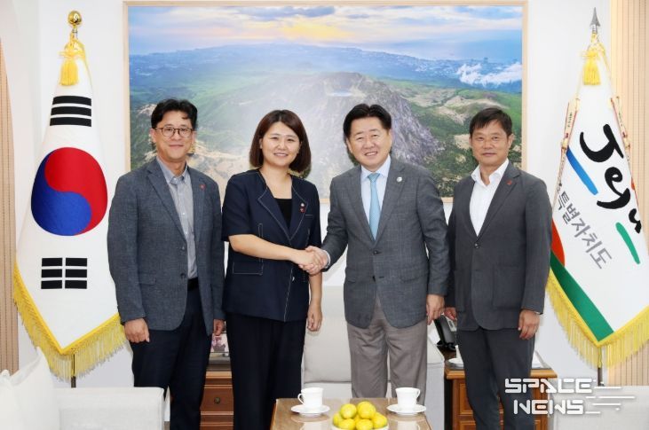 스페이스뉴스 스페이스뉴스 기자 | 오영훈 제주특별자치도지사는 12일 도청을 방문한 손솔 진보당 국회의원과 제주 관광 및 문화 육성 등에 대한 의견을 나눴다.