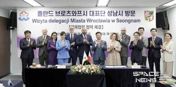 스페이스뉴스 스페이스뉴스 기자 | 성남시는 폴란드 브로츠와프시 대표단(단장 야첵 수트릭 시장)이 국제 우호 도시 간 경제협력 협약 체결을 위해 시를 공식 방문했다고 15일 밝혔다.