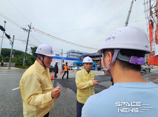 스페이스뉴스 스페이스뉴스 기자 | 최대호 안양시장이 16일 발생한 비계 전도사고 현장에 방문해 신속한 사고 수습과 안전조치를 지시했다.
