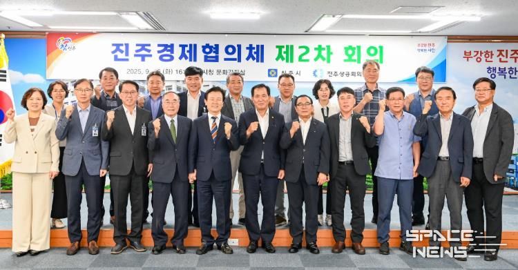 스페이스뉴스 스페이스뉴스 기자 | 진주시는 16일 시청 문화강좌실에서 조규일 진주시장과 허성두 진주상공회의소 회장을 비롯한 지역 경제단체 대표와 기업인 등 24명이 참석한 가운데‘진주경제협의체’제2차 정례 회의’를 개최했다.
