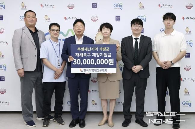스페이스뉴스 스페이스뉴스 기자 | 가평군은 17일 군수실에서 한국지방재정공제회로부터 특별재난지역 재정지원금 3,000만원을 전달받았다고 밝혔다.