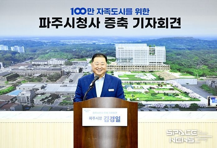 스페이스뉴스 스페이스뉴스 기자 | 김경일 파주시장은 18일 기자회견을 열고 효율과 실용을 원칙으로 한 ‘파주시 시청사 증축 건립 계획’을 발표했다.