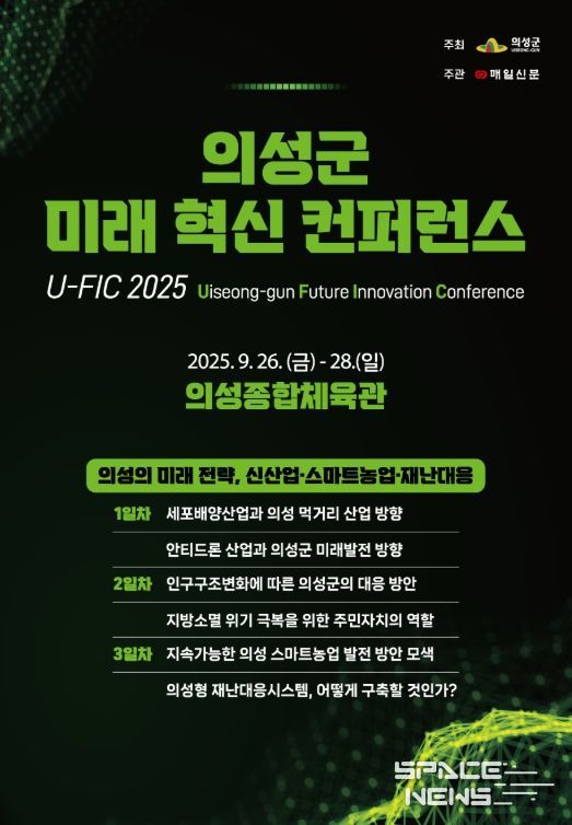 스페이스뉴스 스페이스뉴스 기자 | 의성군의 지속 가능한 미래 성장 전략과 주민 자치의 방향성을 모색하는 ‘의성군 미래 혁신 컨퍼런스(U-FIC·Uiseong-gun Future Innovation Conference)’를 오는 26일부터 28일까지 의성종합체육관에서 개최한다고 밝혔다.