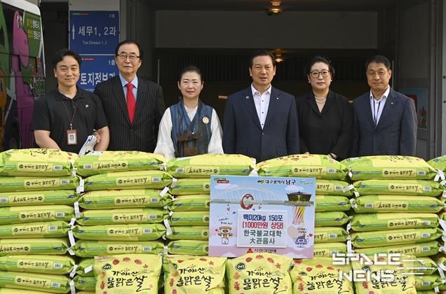 스페이스뉴스 스페이스뉴스 기자 | 한국불교대학 대관음사는 지난 16일 어려운 이웃을 위해 쌀 20kg 150포(1,000만원 상당)를 대구 남구청에 기탁했다.