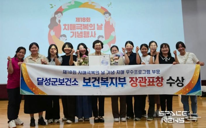 스페이스뉴스 스페이스뉴스 기자 | 달성군이 지난 18일 열린 ‘제18회 치매극복의 날 기념행사’에서 치매 우수프로그램 부문 보건복지부 장관상과 치매 예방 관리 부문 보건복지부 표창을 수상하며 2관왕을 달성했다.