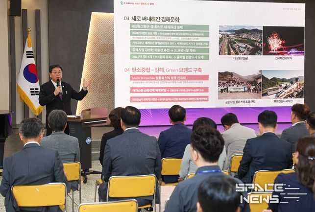 스페이스뉴스 스페이스뉴스 기자 | 김해시는 22일 오전 9시 시청 대회의실에서 홍태용 시장이 직원들을 대상으로 ‘글로컬시티 김해를 위한 도시대전환’을 주제로 강연했다고 밝혔다.