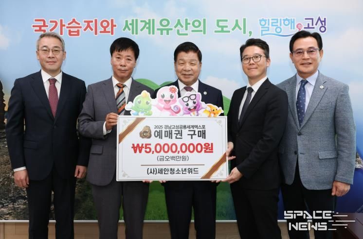 스페이스뉴스 스페이스뉴스 기자 | 고성군 유스호스텔 민간위탁 운영사인 사단법인 세안청소년위드가'2025 경남고성공룡세계엑스포'의 성공적인 개최를 위해 9월 24일 500만 원 상당의 예매권을 구매했다.