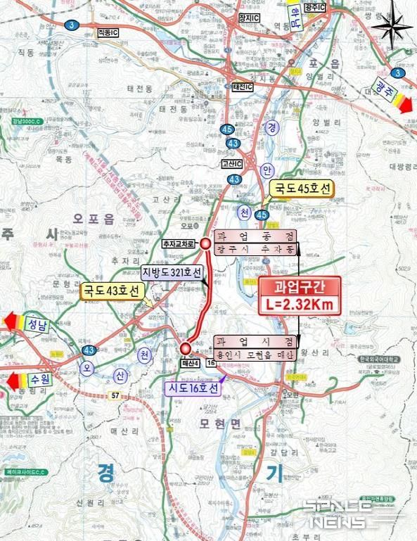 스페이스뉴스 스페이스뉴스 기자 | 용인시 처인구 모현읍 매산리와 광주시 추자동을 연결하는 ‘지방도321호선 매산~일산간 도로 확포장공사’가 완료돼 25일 낮 12시부터 공식 개통한다.