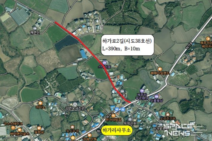 스페이스뉴스 스페이스뉴스 기자 | 제주시는 애월읍 하가리 시도 38호선(L=390m, B=10m) 구간에 대한 도로 확·포장 공사를 마무리하고 9월 준공했다.