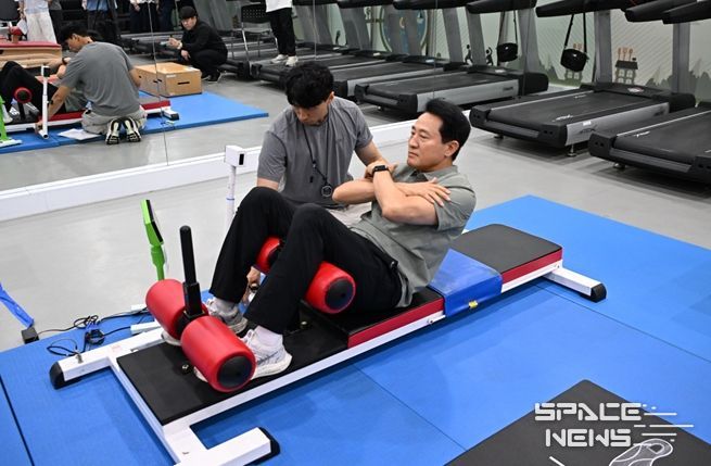 스페이스뉴스 스페이스뉴스 기자 | 오세훈 서울시장이 10월 1일 오후 서울시청 체력단련실에서 지난 9월 10일 발표한 '건강도시 서울 종합계획-더 건강한 서울 9988'의 주요 사업인 ‘체력인증센터’ 운영을 앞두고 체력측정 장비를 점검하고 시범 측정을 진행했다.