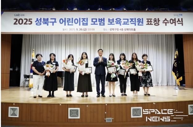 스페이스뉴스 스페이스뉴스 기자 | 서울 성북구가 지난 26일 관내 어린이집에서 장기간 근무하며 보육서비스 향상과 우수 보육프로그램 개발, 보육환경 개선에 기여한 모범 보육교직원에게 표창을 수여했다. 올해 수상자는 원장, 보육교사, 조리사 등 총 77명으로, 각자의 자리에서 아이들의 안전과 건강, 교육의 질 향상에 힘써온 공로를 인정받았다.