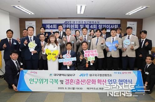 스페이스뉴스 스페이스뉴스 기자 | 대구 달서구는 지난 29일 대구지구청년회의소(회장 이성범)와 초저출생 인구 위기 극복 및 긍정적 결혼문화 확산을 위한 업무협약을 체결했다.