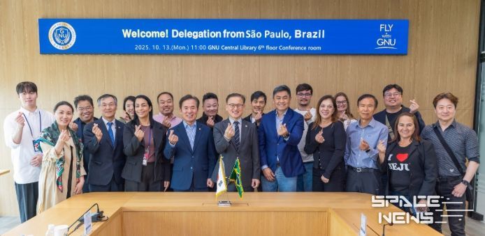 스페이스뉴스 스페이스뉴스 기자 | 경상국립대학교는 브라질 상파울루시 대표단이 10월 13일 오전 경상국립대학교를 내방하여 권진회 총장을 예방하고 우주항공, 문화콘텐츠, 미디어 분야의 협력 방안을 논의했다고 밝혔다.