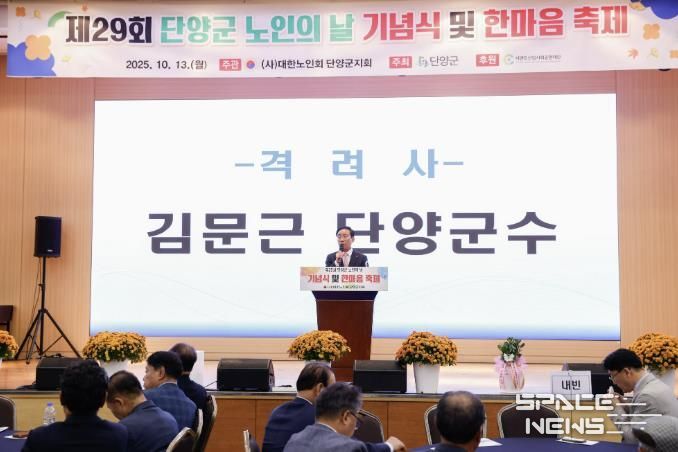 스페이스뉴스 스페이스뉴스 기자 | 충북 단양군은 지난 13일 소노문 단양 그랜드볼룸홀에서 열린 ‘제29회 노인의 날 기념식 및 한마음 축제’를 성황리에 개최했다고 밝혔다.