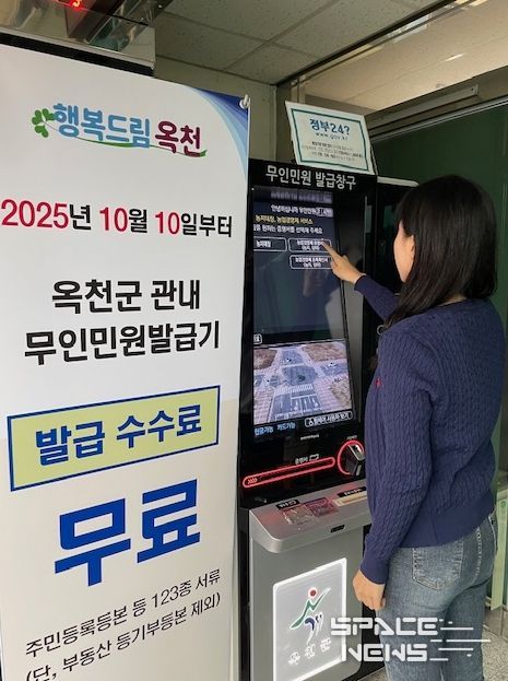 스페이스뉴스 스페이스뉴스 기자 | 옥천군은 군민들의 민원 편의를 높이기 위해 무인민원발급기에서 발급하는 제증명 수수료를 전면 무료로 전환했다.