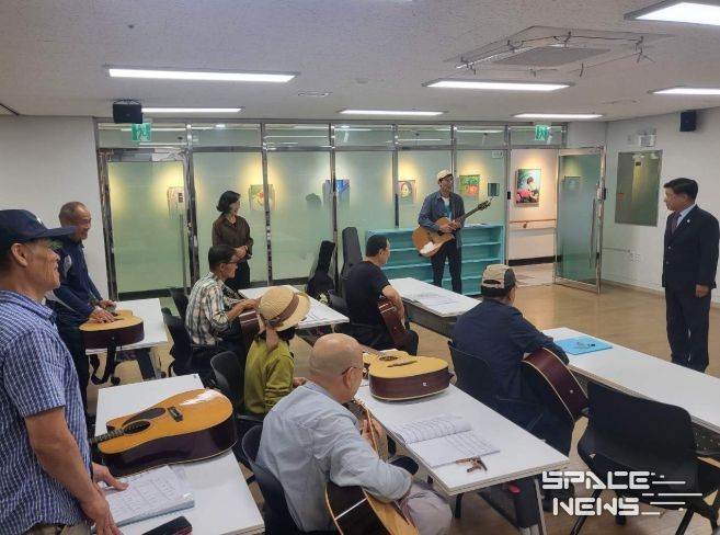 스페이스뉴스 스페이스뉴스 기자 | 고성군이 운영하는 고성군종합사회복지관 분관에서는 10월 17일 저녁, 야간노래교실과 통기타반 수강생들을 격려하기 위해 이상근 군수가 직접 현장을 방문했다.