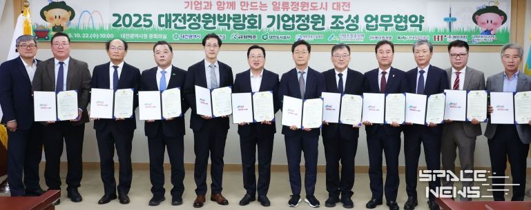 스페이스뉴스 스페이스뉴스 기자 | 대전시는 22일 대전시청 중회의실에서 ‘2025 대전정원박람회’의 성공적 개최를 위해 기업정원 조성 업무협약을 체결했다.