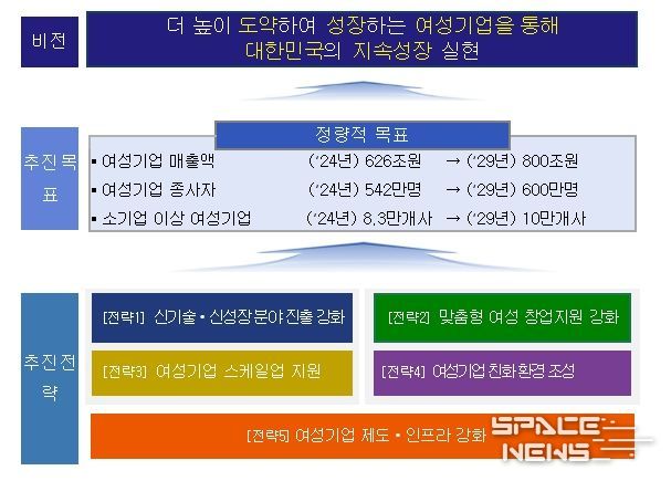 스페이스뉴스 스페이스뉴스 기자 | 중소벤처기업부 는 22일 여성의 창업부터 성장, 글로벌 진출까지 전 주기를 체계적으로 지원하기 위한'제2차 여성기업 활동 촉진 기본계획(’25~’29)'(기본계획)을 발표했다.