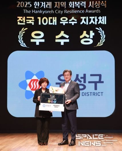 스페이스뉴스 스페이스뉴스 기자 | 대전 유성구가 지난 23일 서울 중구 대한상공회의소 국제회의장에서 열린 '2025 한겨레 지역 회복력 평가' 시상식에서 전국 10대 우수 지방자치단체에 선정됐다.