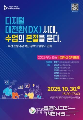 스페이스뉴스 스페이스뉴스 기자 | 부산광역시교육청은 오는 30일 오후 부산교육대학교 참빛극장에서 초등 교원과 교육전문직원 등 200여 명을 대상으로 ‘디지털 대전환(DX)* 시대, 수업의 본질을 묻다’를 슬로건으로 ‘2025 부산 초등 수업혁신 정책포럼’을 개최한다고 밝혔다.
