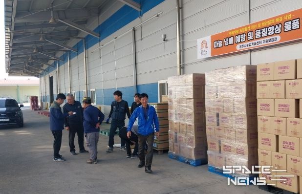 지원된 자재에는 붕소, 몰리브덴 등 미량요소와 아미노산 성분이 함유되어 있어 작물의 활력을 높이고, 저온 등 기상 스트레스에 대한 저항성을 강화하는 효과가 있다.