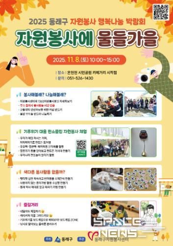 이번 박람회는 지역사회 자원봉사 문화를 확산하고 구민이 직접 참여해 나눔의 가치를 체험할 수 있도록 마련된 행사로, 동래구 내 자원봉사자뿐만 아니라 지역 시민 누구나 참여할 수 있다.