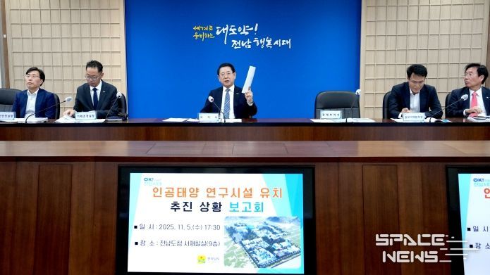 스페이스뉴스 스페이스뉴스 기자 | 전라남도는 5일 도청 서재필실에서 ‘인공태양 연구시설 유치 공모 추진상황 보고회’를 개최하고, 정부의 유치 공모에 대응하기 위한 전략과 추진상황을 점검했다.