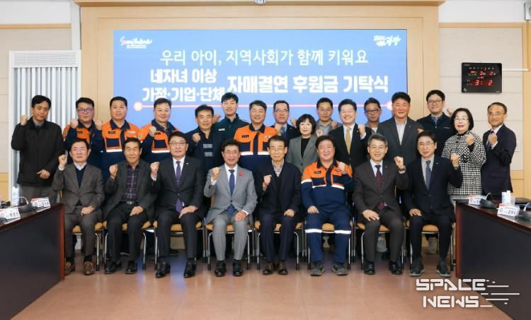 스페이스뉴스 스페이스뉴스 기자 | 광양시는 지난 12일 시청 상황실에서 ‘네 자녀 이상 가정-기업·단체 간 자매결연’ 후원금 기탁식을 개최하고, 지역 내 다자녀 가정을 위한 후원금 9,480만 원을 전달했다고 밝혔다.