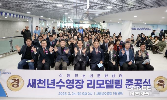 스페이스뉴스 스페이스뉴스 기자 | 수원특례시의회는 24일 청소년문화센터 내 새천년수영장에서 열린 '새천년수영장 리모델링 공사 준공식'에 참석해 준공을 축하했다.