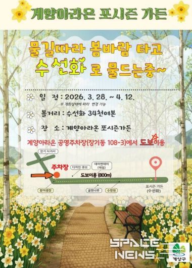 스페이스뉴스 스페이스뉴스 기자 | 인천광역시 계양구는 봄을 맞아 계양아라온 일대에 대규모 꽃 식재를 완료하고, 포시즌가든을 중심으로 수선화가 개화하기 시작하며 화사한 봄 경관을 선보이고 있다고 밝혔다.