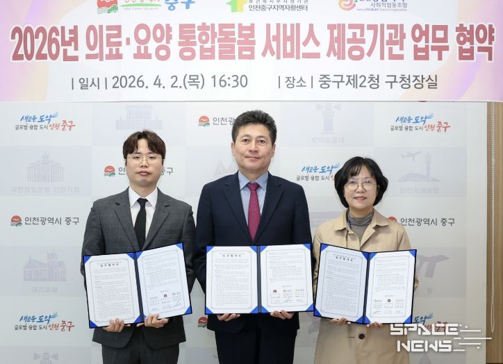 스페이스뉴스 스페이스뉴스 기자 | 인천시 중구는 촘촘하고 든든한 ‘지역사회 통합돌봄망’ 구축을 위해 지난 2일 제2청 구청장실에서 복지 서비스 제공기관, 의료기관과 잇따라 업무 협약을 체결했다고 밝혔다.
