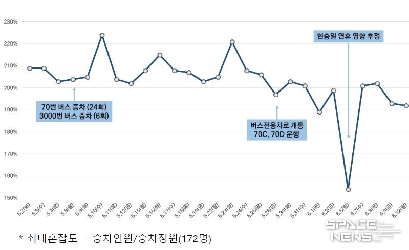원희룡 국토교통부장관은 “지난 4월 현장점검 이후 버스전용차로 개통, 버스증차 등 단기대책을 추진한 결과 혼잡상황이 일정수준 개선된 것으로 보이지만, 여전히 시민들께서 이용하기엔 불편한 것이 사실”이라고 말했다.