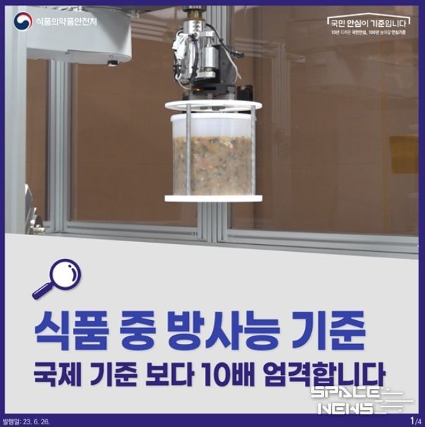 스페이스뉴스 관리자 기자 | 우리나라 식품 중 방사능 기준은 세계 어느 나라 보다 엄격한 기준 적용 중이며, 국제식품규격위원회(CODEX)의 1000㏃/㎏다도 10배 엄격한 수준입니다.