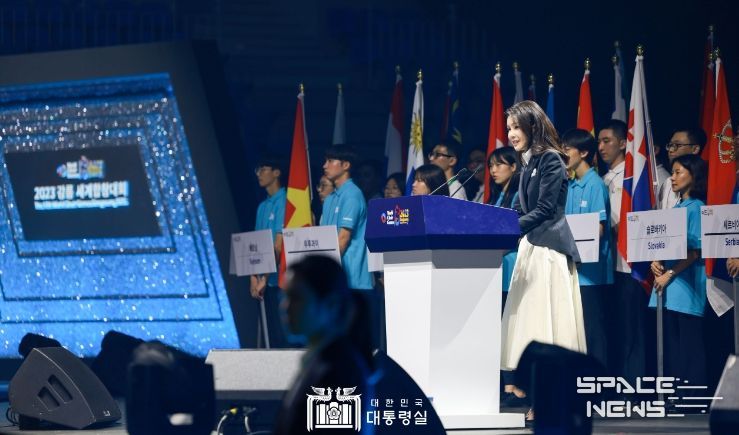 스페이스뉴스 스페이스뉴스 기자 | 김건희 여사는 7월 3일 전 세계 아마추어 합창인들의 축제인 ‘2023 강릉 세계합창대회’의 개막을 축하하고자 강원도 강릉을 방문했다. ‘세계합창올림픽’으로도 불리는 세계합창대회는 코로나 이후 지방 개최 최대 규모이자 강원특별자치도 출범 이후 최초 개최되는 국제행사로 7월 3일부터 13일까지 진행된다.