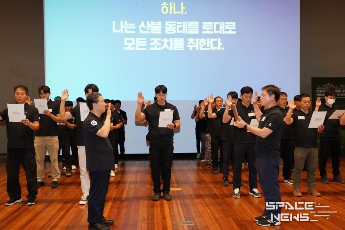 스페이스뉴스 스페이스뉴스 기자 | 산림청은 11일 케이티(KT) 대전 인재개발원에서 산불재난특수진화대 연수회를 개최하고 대전광역시와 함께 봄철 산불 진화를 위해 헌신한 산림청 산불재난특수진화대 435명의 노고를 격려했다.