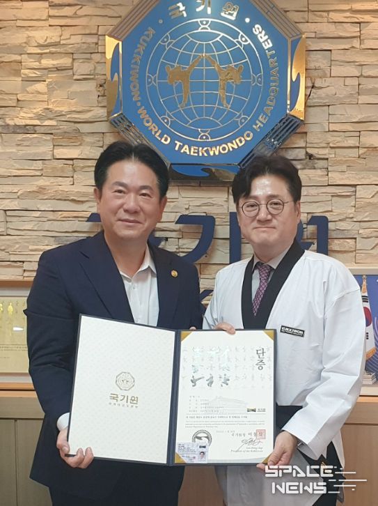 스페이스뉴스 스페이스뉴스 기자 | 더불어민주당 홍익표 국회 문화체육관광위원장(서초을)이 국기원을 방문, 태권도 명예7단증을 받았다.