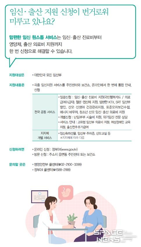 스페이스뉴스 스페이스뉴스 기자 | 맘편한 임신 원스톱 서비스는 임신·출산 진료비부터 영양제, 출산 의료비 지원까지 한 번 신청으로 해결할 수 있습니다.