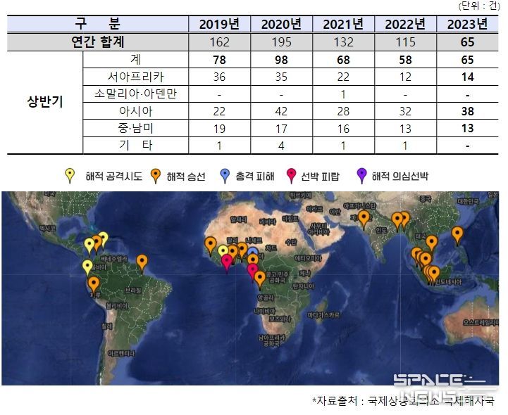 스페이스뉴스 스페이스뉴스 기자 | 해양수산부가 올해 상반기 전 세계 주요 해역별 해적사건 동향을 발표했다.